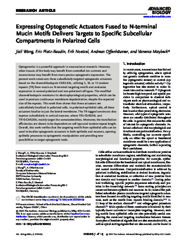 Advanced Biology - 2023 - Wang - Expressing Optogenetic Actuators Fused to N‐terminal Mucin Motifs Delivers Targets to.pdf [3.39 MB] 25 Mar 2024, 13:50 OpenAccess