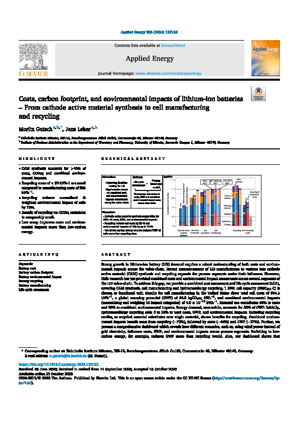 Costs, carbon footprint, and environmental impacts of lithium-ion batteries – From cathode active material synthesis to cell manufacturing and recycling.gif (icon)