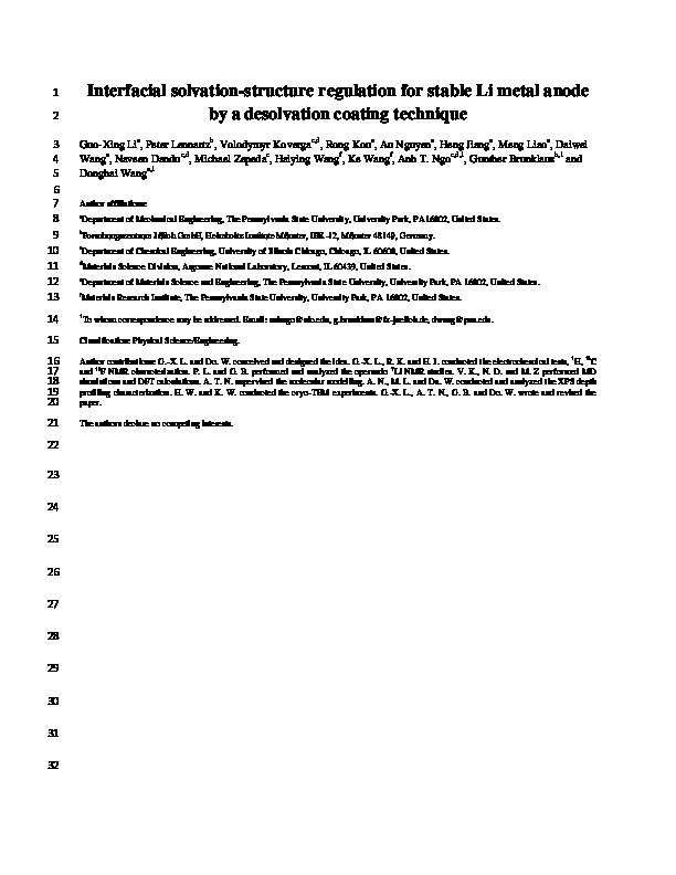 | Home > Publications database > Interfacial solvation-structure regulation for stable Li metal anode by a desolvation coating technique > Access to Fulltext |