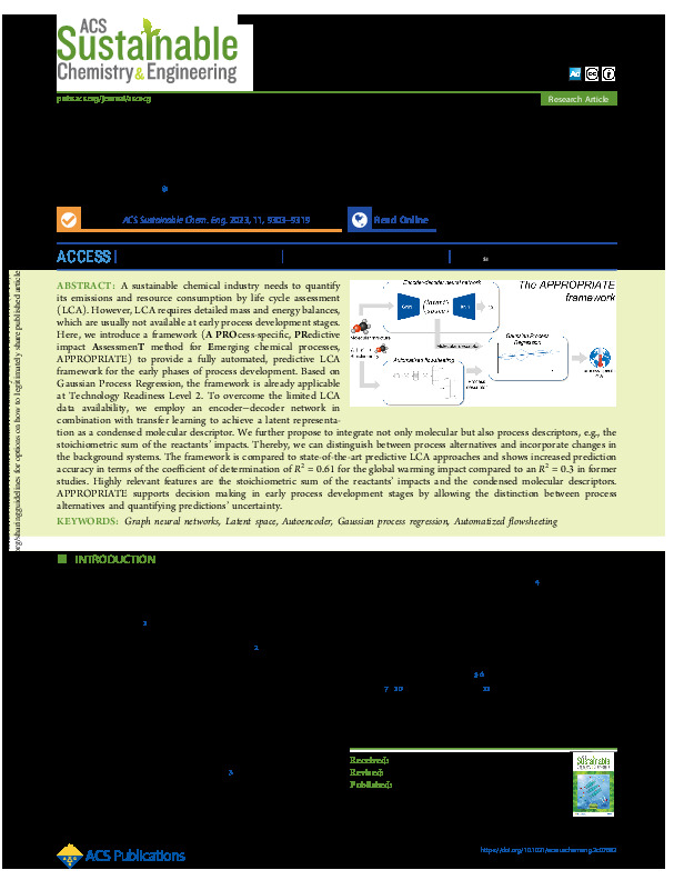 Hauptseite > Publikationsdatenbank > APPROPRIATE Life Cycle Assessment: A PRO cess-Specific, PR edictive I mpact A ssessmen T Method for Emerging Chemical Processes > Zugang zum Volltext