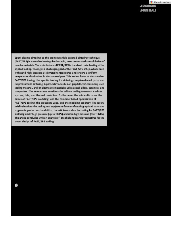 Adv Eng Mater - 2024 - Laptev - Tooling in Spark Plasma Sintering Technology Design Optimization and Application.pdf [10.12 MB] 02 May 2024, 15:04 OpenAccess