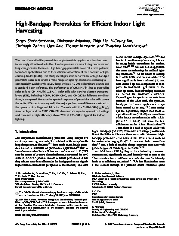 Home > Workflow collections > Publication Charges > High‐Bandgap Perovskites for Efficient Indoor Light Harvesting > Access to Fulltext |
