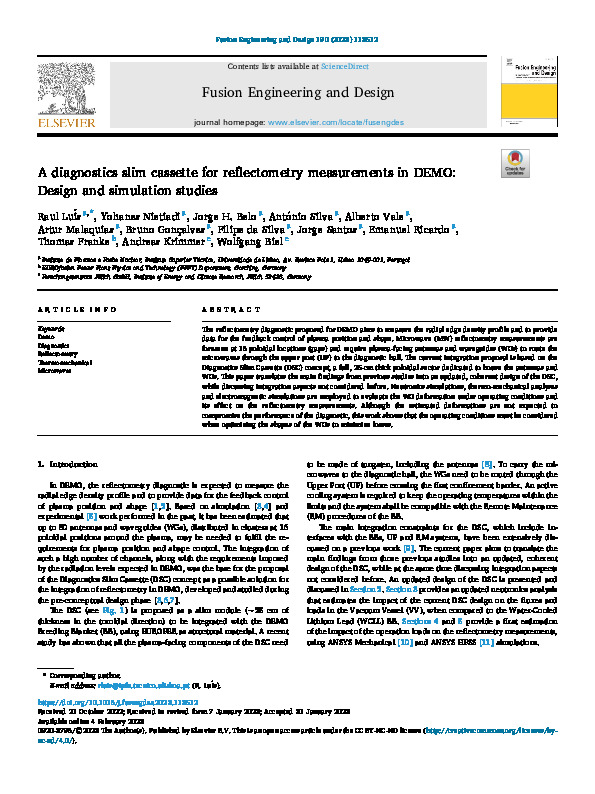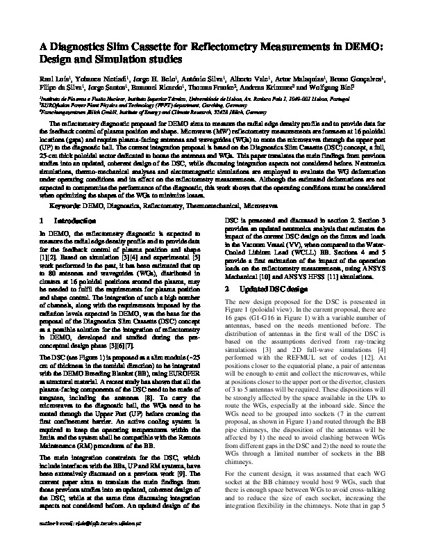 | Home > Publications database > A diagnostics slim cassette for reflectometry measurements in DEMO: Design and simulation studies > Access to Fulltext |
