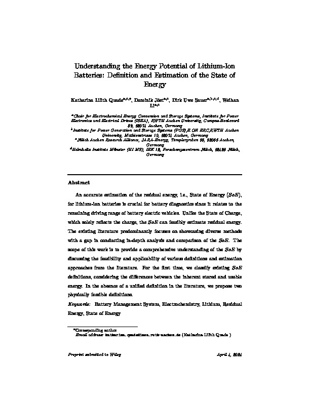 Hauptseite > Publikationsdatenbank > Understanding the Energy Potential of Lithium‐Ion Batteries: Definition and Estimation of the State of Energy > Zugang zum Volltext |