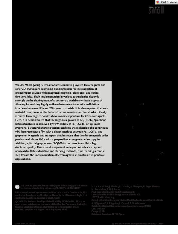 Small - 2023 - Lv - Large‐Area Synthesis of Ferromagnetic Fe5 xGeTe2 Graphene van der Waals Heterostructures with Curie.pdf [2.28 MB] 09 Apr 2024, 16:50 OpenAccess