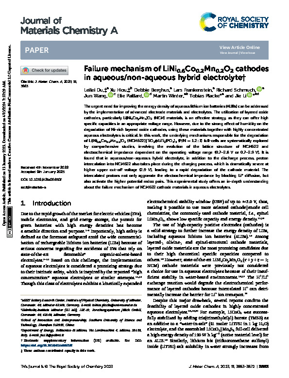 Failure mechanism of LiNi 0.6 Co 0.2 Mn 0.2 O 2 cathodes in aqueous_non-aqueous hybrid electrolyte.pdf [1.69 MB] 10 Apr 2024, 08:40 OpenAccess