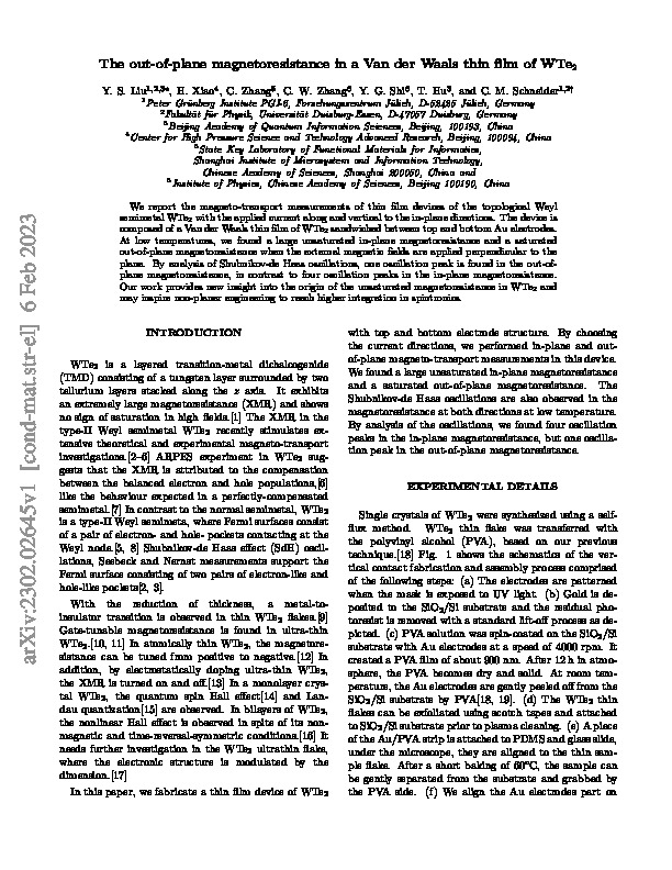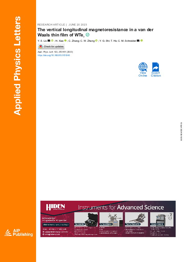 | Hauptseite > Publikationsdatenbank > The vertical longitudinal magnetoresistance in a van der Waals thin film of WTe2 > Zugang zum Volltext |