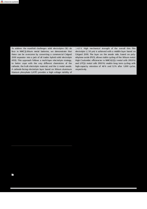 Home > Publications database > Converting a Commercial Separator into a Thin‐film Multi‐Layer Hybrid Solid Electrolyte for Li Metal Batteries > Access to Fulltext