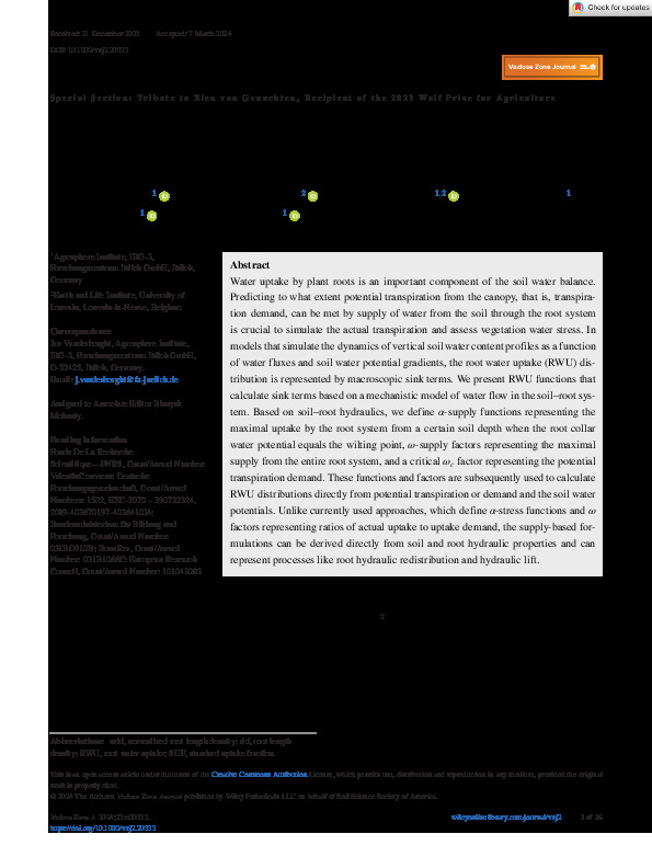 Vadose Zone Journal - 2024 - Vanderborght - Mechanistically derived macroscopic root water uptake functions The and of.pdf [1.22 MB] 23 Jul 2024, 12:29 OpenAccess
