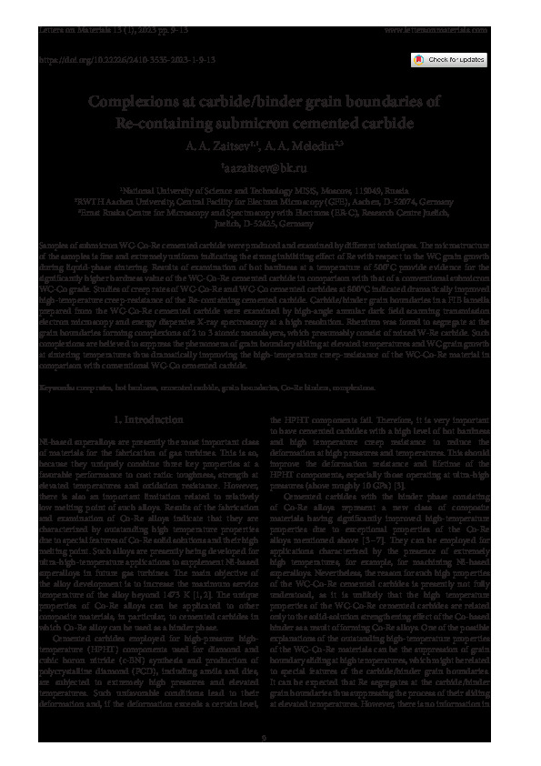 | Hauptseite > Publikationsdatenbank > Complexions at carbide / binder grain boundaries of Re-containing submicron cemented carbide > Zugang zum Volltext |