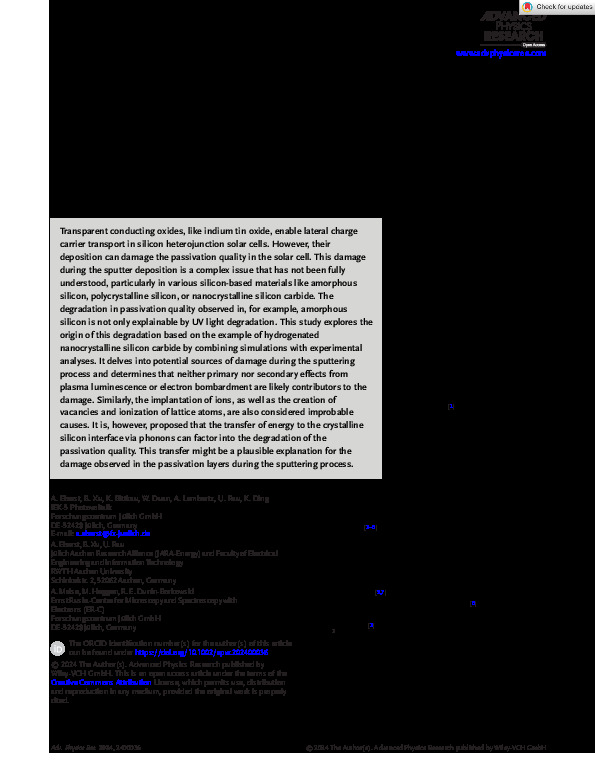Advanced Physics Research - 2024 - Eberst - Deeper Insight into the Mechanisms Behind Sputter Damage in Silicon Solar Cells.pdf [4.26 MB] 24 Jul 2024, 13:08 OpenAccess