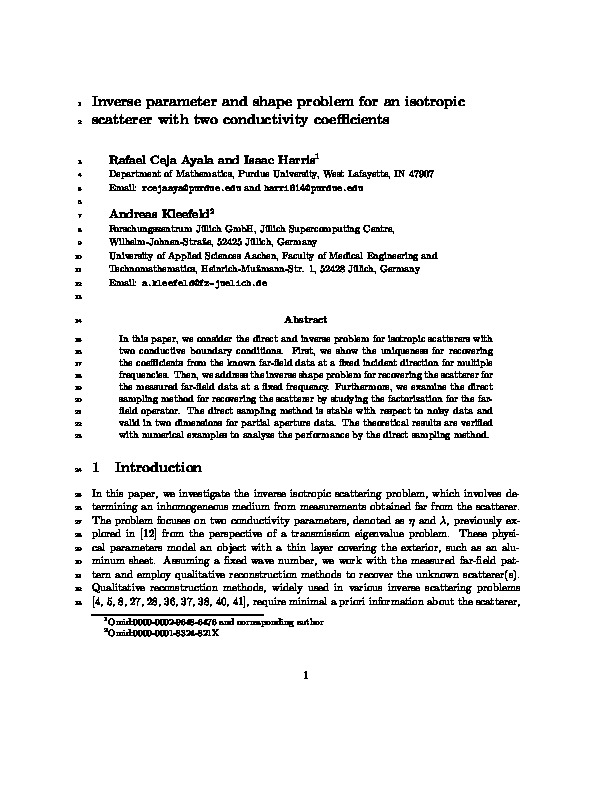 Home > Publications database > Inverse parameter and shape problem for an isotropic scatterer with two conductivity coefficients > Access to Fulltext |