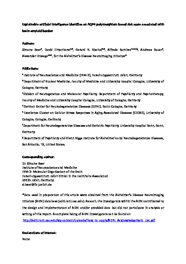 Home > Publications database > Explainable artificial intelligence identifies an AQP4 polymorphism-based risk score associated with brain amyloid burden > Access to Fulltext |