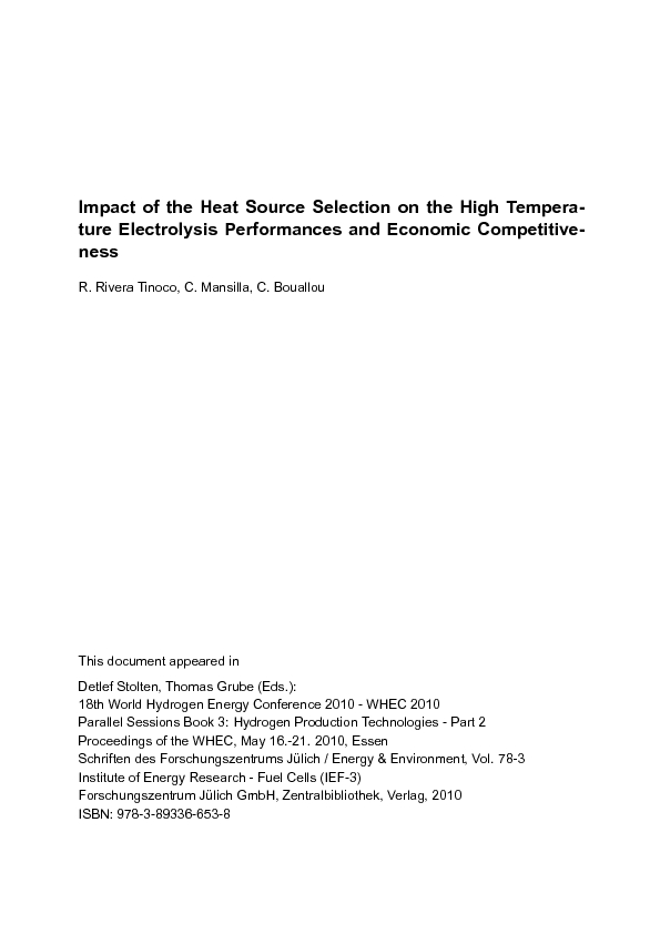 | Home > IEK > IEK-3 > Impact of the Heat Source Selection on the High Temperature Electrolysis Performances and Economic Competitiveness > Access to Fulltext |