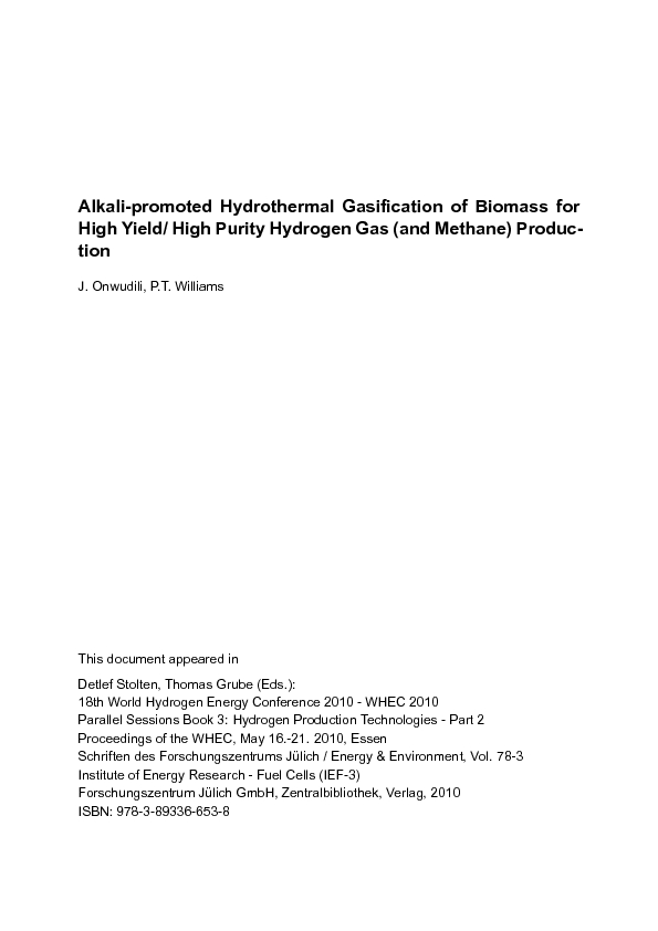 | Home > IEK > IEK-3 > Alkali-promoted Hydrothermal Gasification of Biomass for High Yield/ High Purity Hydrogen Gas (and Methane) Production > Access to Fulltext |