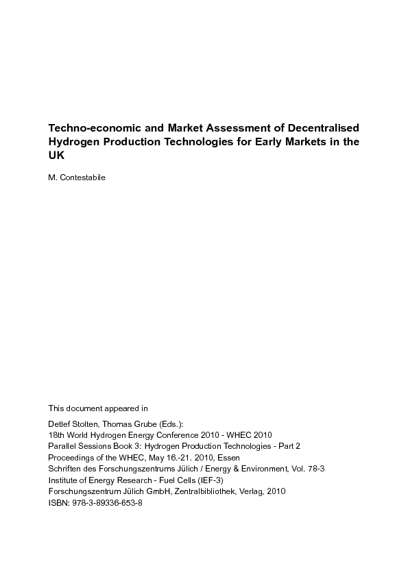 | Home > IEK > IEK-3 > Techno-economic and Market Assessment of Decentralised Hydrogen Production Technologies for Early Markets in the UK > Access to Fulltext |