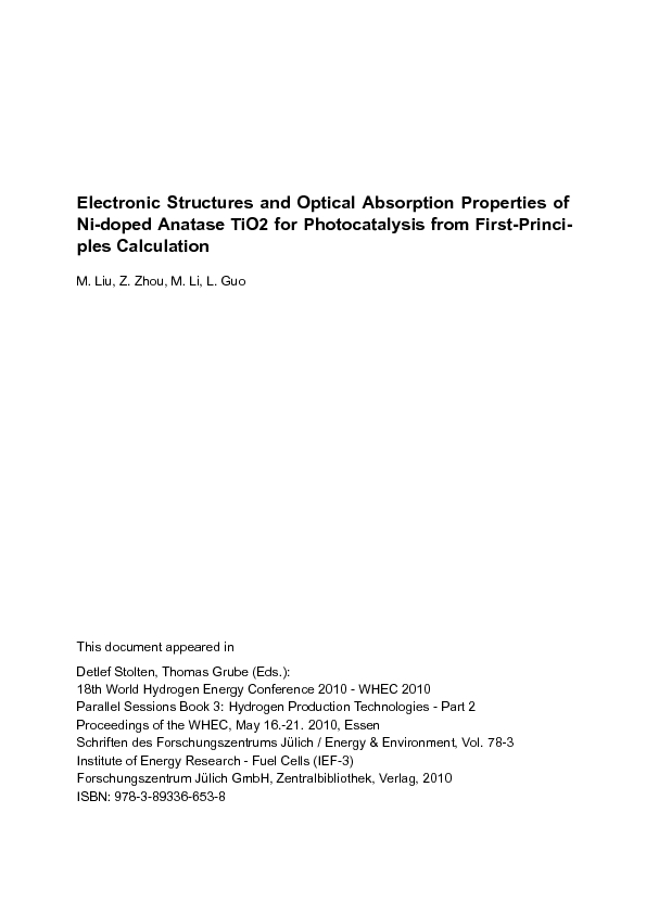 | Home > IEK > IEK-3 > Electronic Structures and Optical Absorption Properties of Ni-doped Anatase TiO2 for Photocatalysis from First-Principles Calculation > Access to Fulltext |