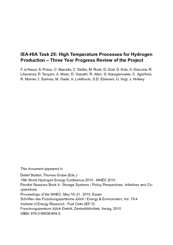 Hauptseite > IEK > IEK-3 > IEA-HIA Task 25: High Temperature Processes for Hydrogen Production – Three Year Progress Review of the Project > Zugang zum Volltext |