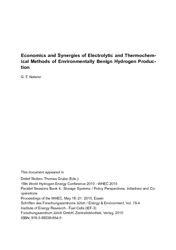 Hauptseite > IEK > IEK-3 > Economics and Synergies of Electrolytic and Thermochemical Methods of Environmentally Benign Hydrogen Production > Zugang zum Volltext |