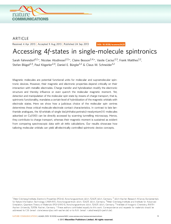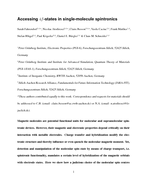 | Home > Workflow collections > Public records > Accessing 4f-states in single-molecule spintronics > Access to Fulltext |