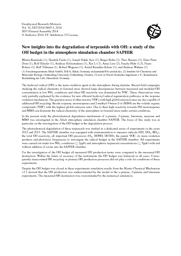 Home > Workflow collections > Public records > New insights into the degradation of terpenoids with OH: a study of the OH budget in the atmosphere simulation chamber SAPHIR > Access to Fulltext |