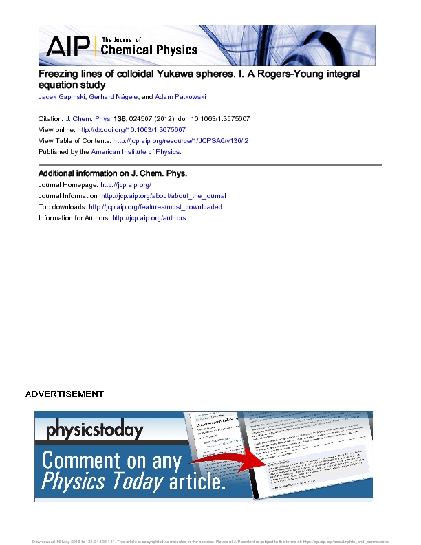 Home > Publications database > Freezing lines of colloidal Yukawa spheres. I. A Rogers-Young integral equation study > Access to Fulltext |