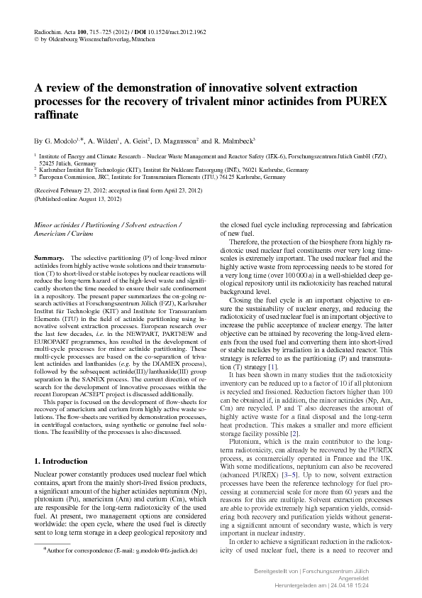 [Radiochimica Acta] A review of the demonstration of innovative solvent extraction processes for the recovery of trivalent minor actinides from PUREX raffinate.jpg (icon-180) [27.29 KB] 24 Apr 2018, 15:26 OpenAccess