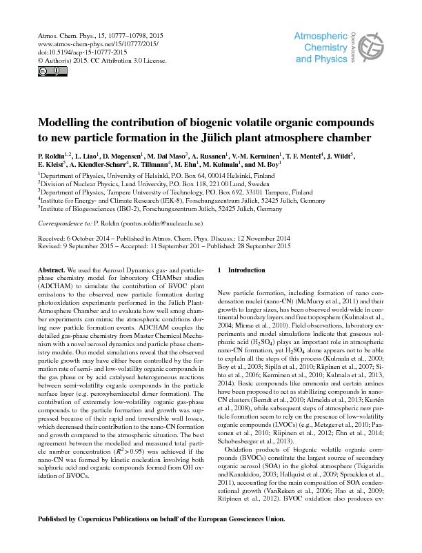Home > Workflow collections > Public records > Modelling the contribution of biogenic volatile organic compounds to new particle formation in the Jülich plant atmosphere chamber > Access to Fulltext |