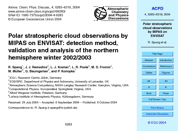 Hauptseite > IEK > IEK-7 > Polar stratospheric cloud observations by MIPAS on ENVISAT: detection method, validation and analysis of the northern hemisphere winter 2002/2003 > Zugang zum Volltext |