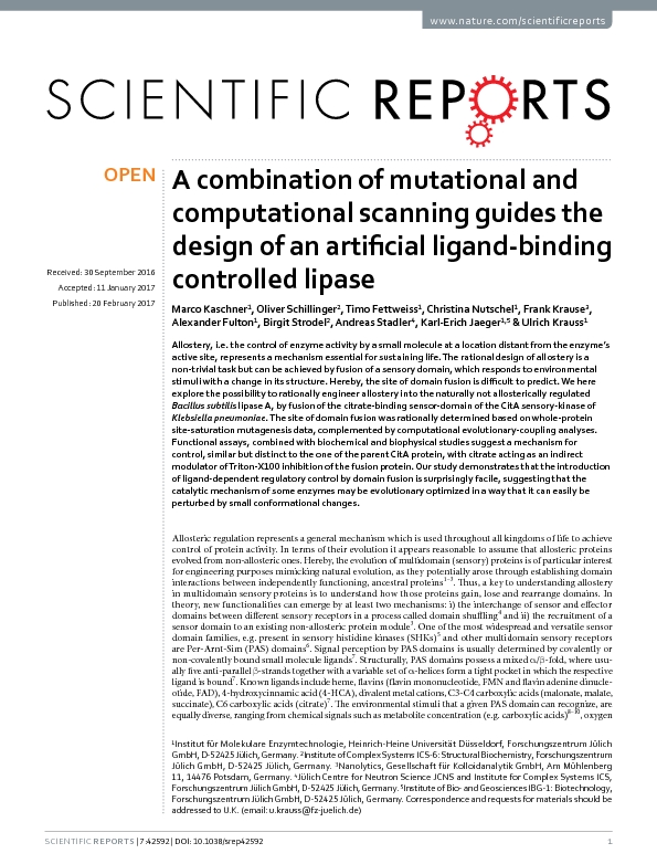 Home > Workflow collections > Publication Charges > A combination of mutational and computational scanning guides the design of an artificial ligand-binding controlled lipase > Access to Fulltext |