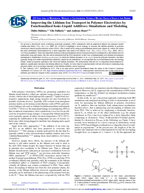 | Home > Workflow collections > Publication Charges > Improving the Lithium Ion Transport in Polymer Electrolytes by Functionalized Ionic-Liquid Additives: Simulations and Modeling > Access to Fulltext |