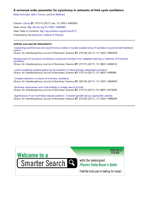 | Home > Publications database > A universal order parameter for synchrony in networks of limit cycle oscillators > Access to Fulltext |