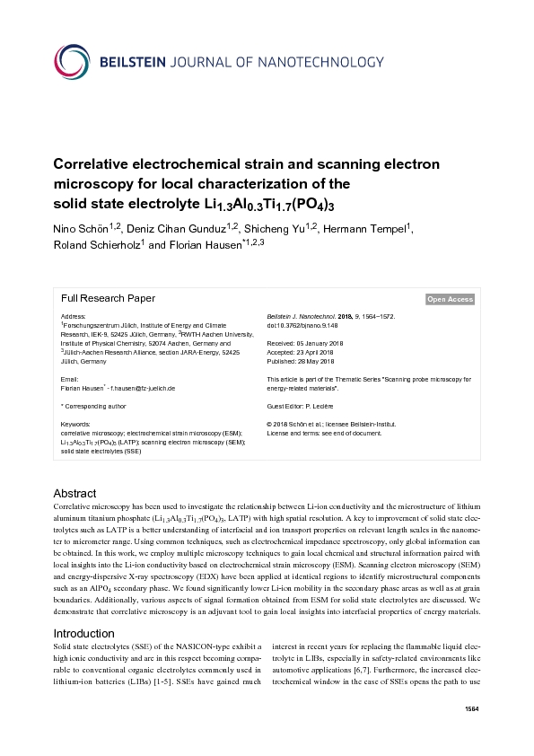 | Home > Publications database > Correlative Electrochemical Strain and Scanning Electron Microscopy for local characterization of the solid state electrolyte Li1.3Al0.3Ti1.7(PO4)3 > Access to Fulltext |