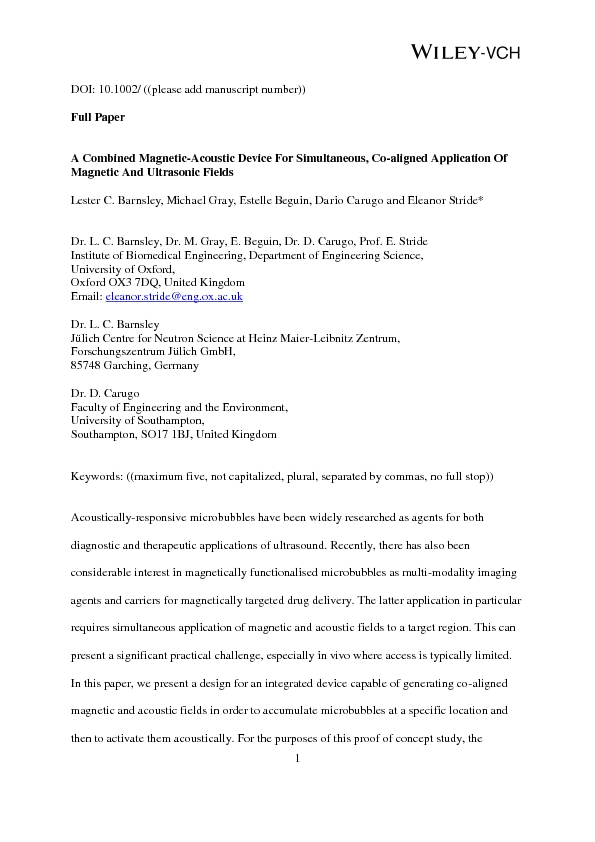 | Home > Publications database > A Combined Magnetic-Acoustic Device for Simultaneous, Coaligned Application of Magnetic and Ultrasonic Fields > Access to Fulltext |
