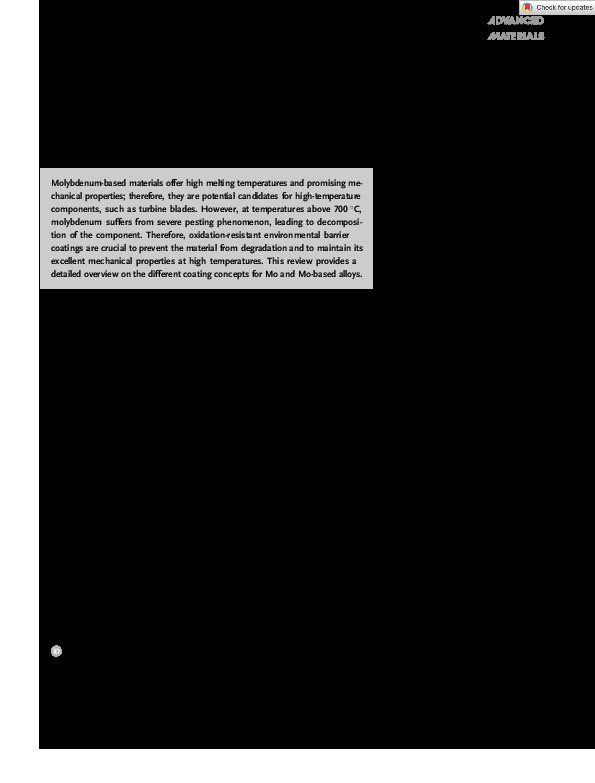 Adv Eng Mater - 2020 - Gatzen - Oxidation‐Resistant Environmental Barrier Coatings for Mo‐Based Alloys A Review.pdf [4.66 MB] 01 May 2024, 13:30 OpenAccess